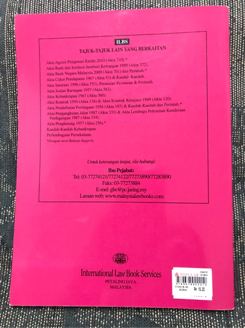 2000 Akta insurans 1963 Published. 1988 Akta insurans 1996 Akta 553 dan peraturan-peraturan dan perintah Published. Akta Insurans 1996 Akta 553 peraturan-peraturan dan perintah.